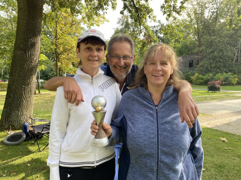 Am 30.09.23 nahm eine Mannschaft des Kreativ e.V am 1. Boulecup der Gemeinde Dallgow anlässlich der Einweihung zweier Boulebahnen Teil. Dabei konnten Frauke, Petra und Ralf die drei Vorrundenspiele gewinnen und zogen somit ins Finale ein. Im Endspiel wurde es gegen die Fußballer aus Dallgow ziemlich spannend. Die Drei setzen sich dann knapp mit 13:11 durch. Bei der Siegerehrung bedankte sich der Bürgermeister noch einmal für die Teilnahme und dem überreichten Gastgeschenk.