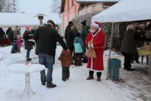 In der Scheune gabt es ein Bastelangebot für Kinder, es werden Geschichten vorgelesen und der Weihnachtsmann war auch schon anwesend.