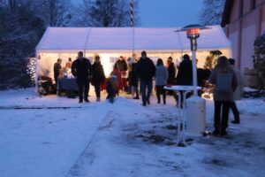 Am 2.12.2023 wurden auf dem Gartengelände, Dorfstraße 7, 14621 Schönwalde-Glien an über 20 Ständen Kunsthandwerk und Leckereien angeboten, wie z.B. Keramik, Holzarbeiten, Handarbeiten, Gefilztes, Malerei, Schmuck, handbemaltes Porzellan und Weihnachtskarten sowie Honig und Marmelade.