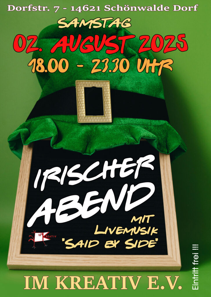 in den Garten ein. Das diesjährige Motto: Irischer Abend. Die Musik dazu spielt live die Band SAID BY SIDE.