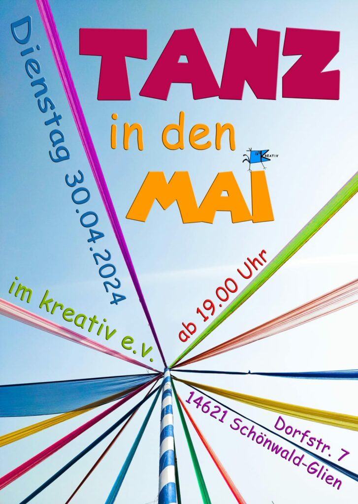 Der Verein kreativ freut sich sehr, wieder zum traditionellen „Tanz in den Mai“ in die Dorfstraße 7, Schönwalde-Glien in die Scheune einladen zu können.