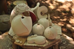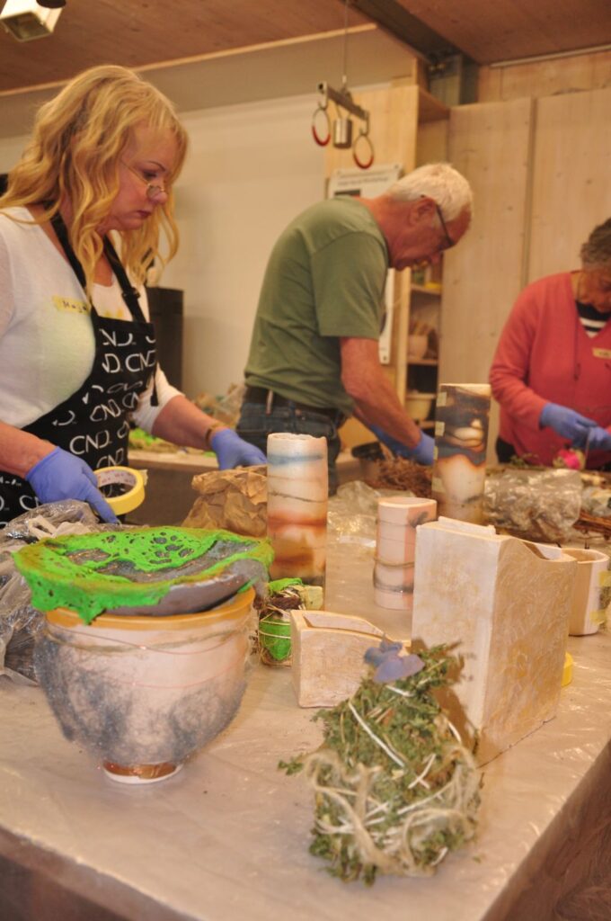 Vor kurzem waren Julia Krüger und Detlef(Vitus) Pinter, Mitglieder unserer Töpfergruppe, zu einem Wochenendworkshop in Karlruhe bei Sabine Classen. Sabine Classen ist eine renommierte deutsche Keramikkünstlerin und Bildhauerin, die für ihre dynamischen, oft von Bewegung inspirierten Skulpturen bekannt ist. Ihre Werke zeichnen sich durch eine Verbindung von Form, Rhythmus und Raum aus und spiegeln Einflüsse aus Natur, Musik und Mathematik wider. Weitere Information zu der Künstlerin erhalten Sie unter https://www.sabineclassen.de/