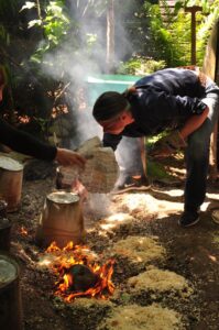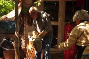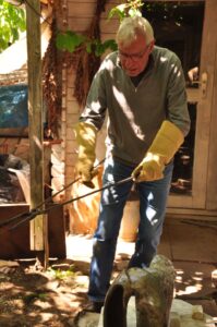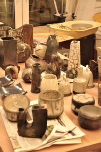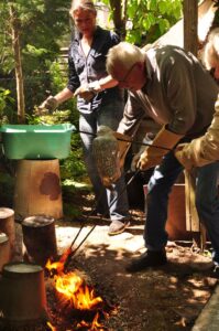 Auch die nächsten Tage wurde von 10.00 bis 21.00 Uhr fleißig gearbeitet. Wobei uns beiden (Vitus + Julia) die besondere Aufgabe zukam, den Raku-Brand zu betreuen. Etwas überraschend, aber wir haben die Aufgabe wohl ganz gut gemeistert.
